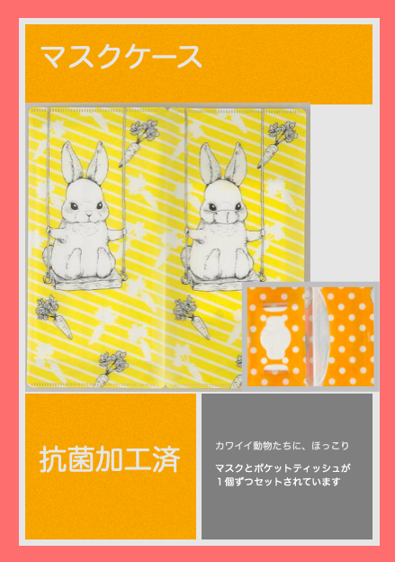 マスクケース 衛生アイテム X Facebook LINE コピー 2020.08.13 色々なマスクケースを取り扱いしておりますが、今回はこちらをご紹介いたします。 イラストがとってもカワイイこちらのケース。 よく見ると動物のイラストにちょっとした違いがあります ( ´͈ ᵕ `͈ ) 抗菌加工済み、ポケットティッシュとマスクが各1付き!! カワイイだけではなく、しっかり者(?)の動物たちです。