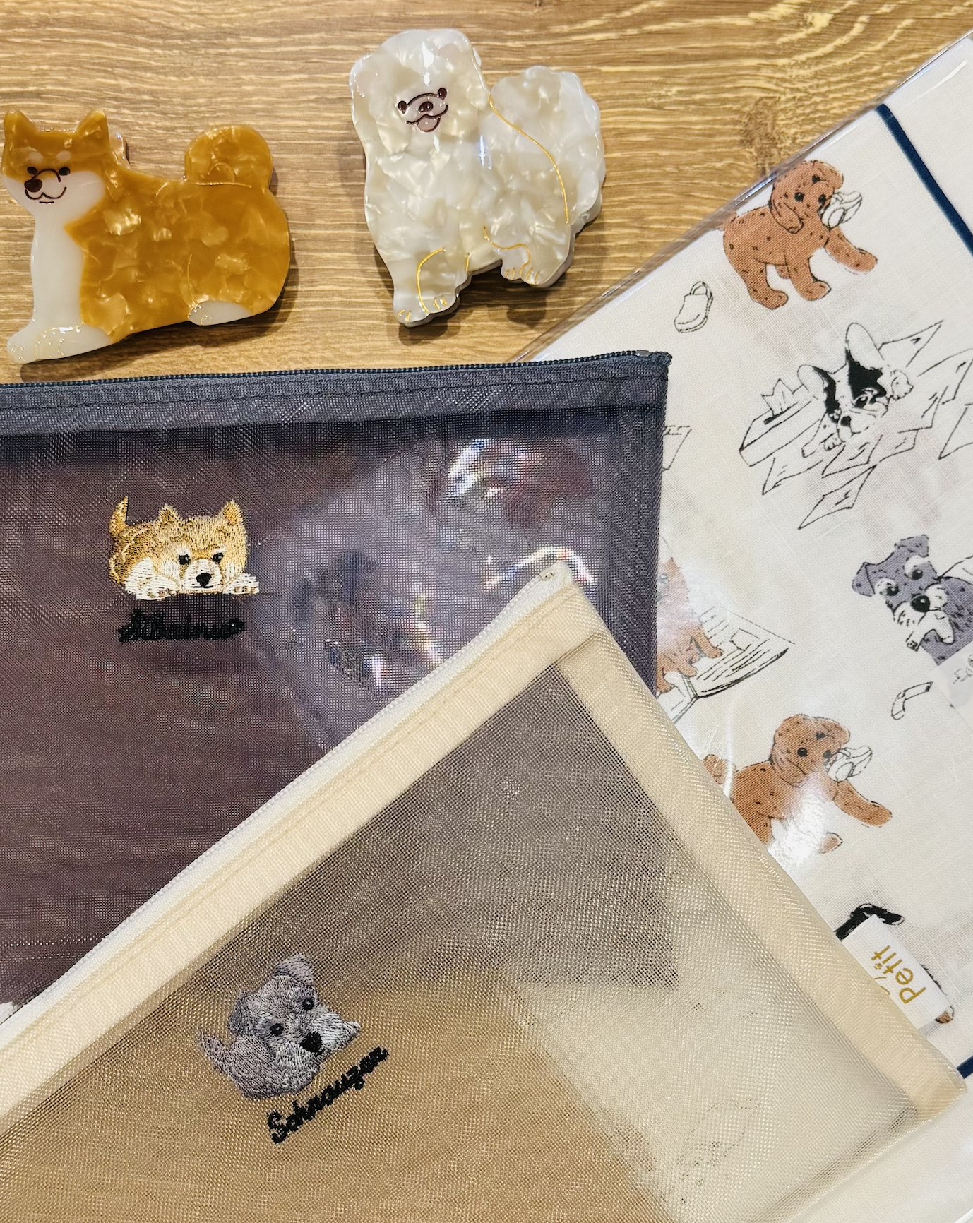 メッシュ素材を活かしてワンコモチーフやにゃんこモチーフのアイテムを入れると